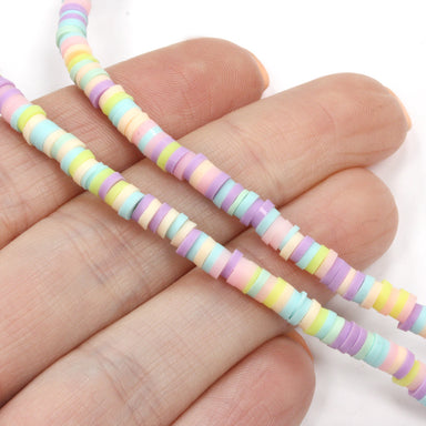 A great mix of tiny polymer clay discs, perfect to use as spacers or string as stretchy bracelets for a fun stacking set.