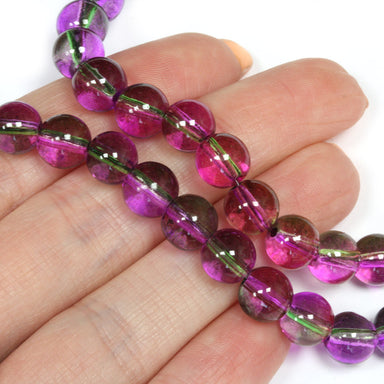Pretty purple and green transparent glass 8mm beads with a mix of colour making each one unique. Approximately 100 beads per string. Ideal beads fo...