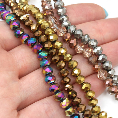 A yummy 5 string bundle of tonal pink glass beads, perfect to bump up your jewellery making supplies! 5Â x strings of 4x6mm facetted rondelle glas...