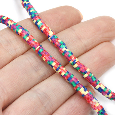 A great mix of tiny polymer clay discs, perfect to use as spacers or string as stretchy bracelets for a fun stacking set.