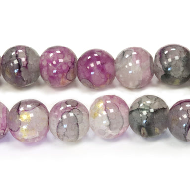 Gorgeous crackled glass beads with a gold coating. A string of approximately 84 beads. Material: Glass Shape: Round Size: 10mm Colour: Purple Hol...