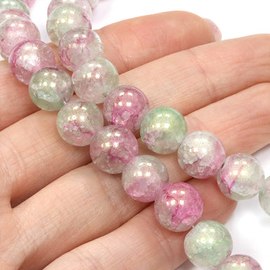 Gorgeous crackled glass beads with a gold coating. A string of approximately 84 beads. Material: Glass Shape: Round Size: 10mm Colour: Pink Hole ...