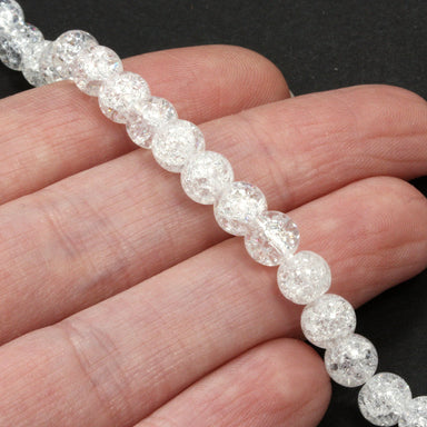 Beautiful crackled glass that has been given a frosted effect makes it look quite mystical. Approximately 38 beads per string.