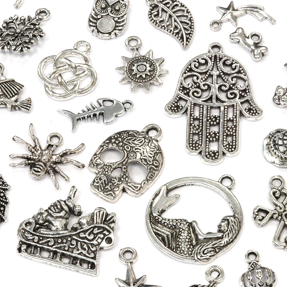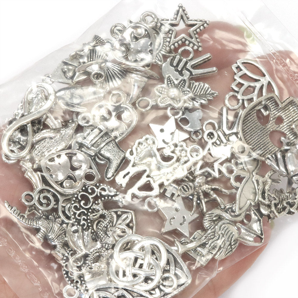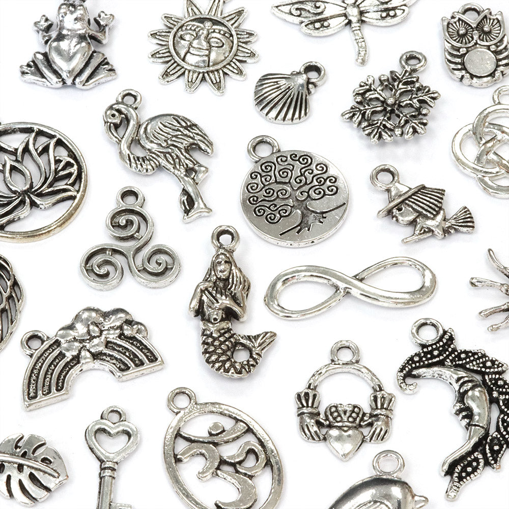 This 50g pack contains a mix of metal charms and pendants. They are ideal for jewellery-making; earrings pendants or adding to charm bracelets. You could use them for scrapbooking, garment embellishment, adding to a ribbon for gift wrapping, card making, and other creative projects .They provide a great way to bring personality and character to your jewellery or craft project.