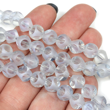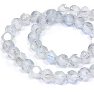 Beautiful crackled glass that has been given a frosted effect makes it look quite mystical. Approximately 63 beads per string.