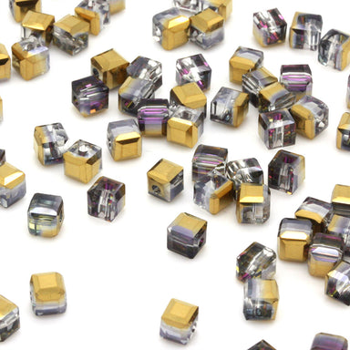 Beautiful glass cubes with a gold coating that creates a purple flash in the cube.
