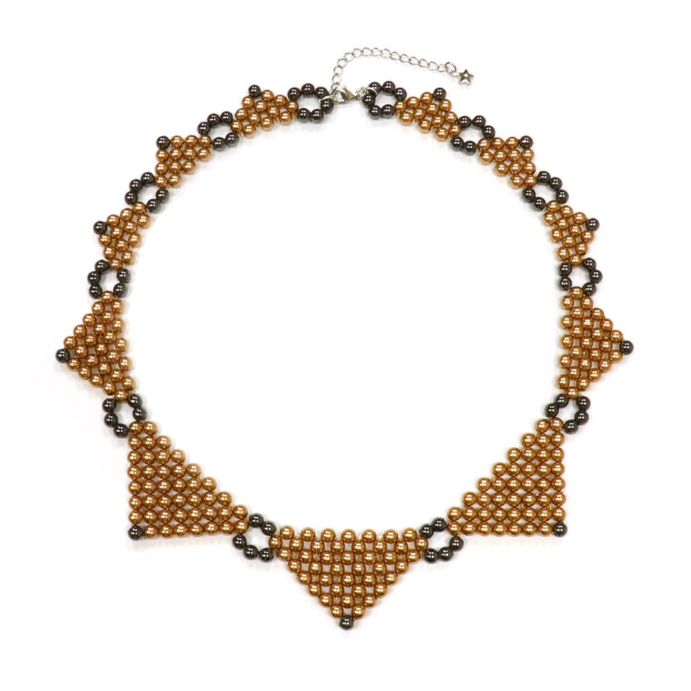 An elegant collar perfect for a dressy evening or for when you want to feel extra fancy. An intermediate project where a working knowledge of right angle weave will help with this project.
