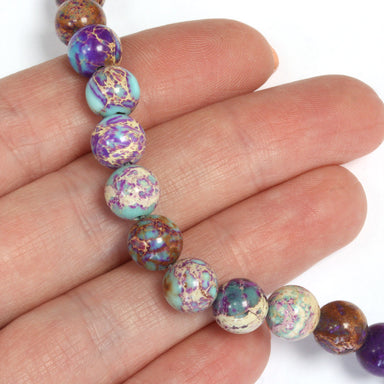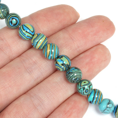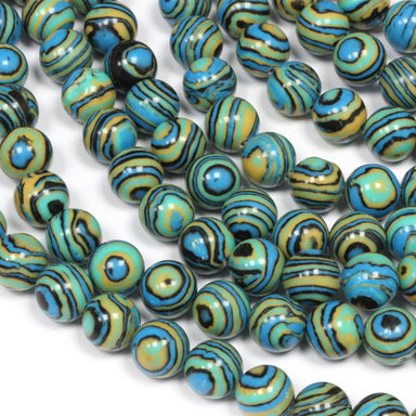 Synthetic malachite in unusual colours. Please remember our semi-precious beads will all include natural inclusions and slight variations of colour...