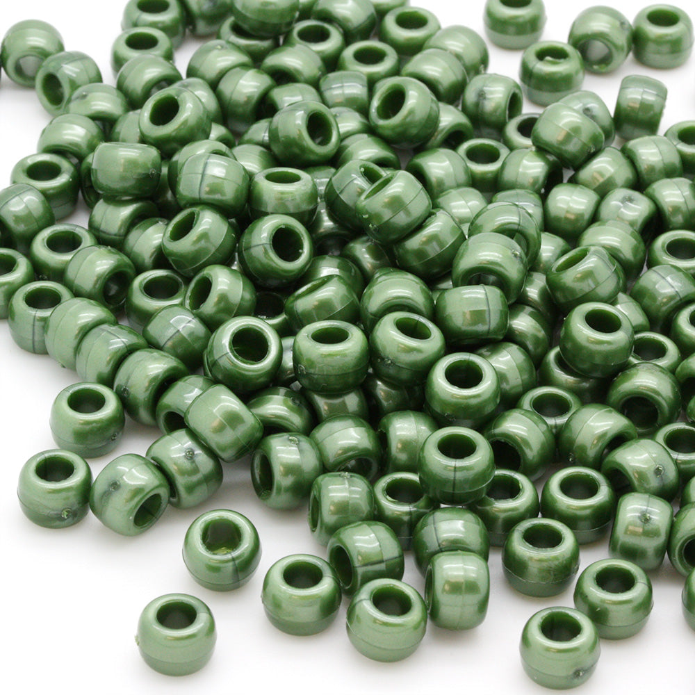Bath Pearl Forest Green Plastic Barrel Pony 6x8mm - Pack of 250