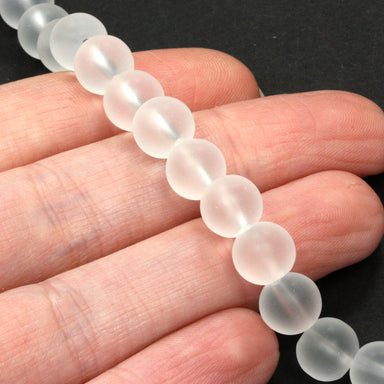Frosted glass rounds that seem to glow inside. Approximately 50 beads per string.