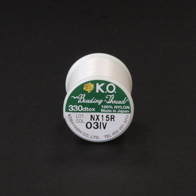 KO beading thread is used for bead weaving seed beads. It was created by Japanese master beader Sonoko Nozue and is of the highest quality pre-waxed nylon. The thread is abrasion and tangle resistant due to the fact the thread is pre-waxed making for easier stress free bead weaving. Reels are approx 50m, the thread is  Size: 0.2032mm thick and fits through all our beading needles, and can be used with size 15/0, size 11/0 and size 8/0 seed beads, and our mix sized seed bead mixes