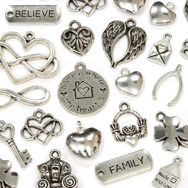 Hearts & Sentiment Charms Mix - Pack of 50g Discover all the lovely hearts in this charm mix, as well as other symbols of luck and wishes and m...