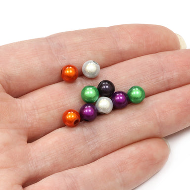 A fun Halloween miracle bead mix! 4mm beads in a mix of purple, orange, green, black and white. These are known as miracle beads because the way t...