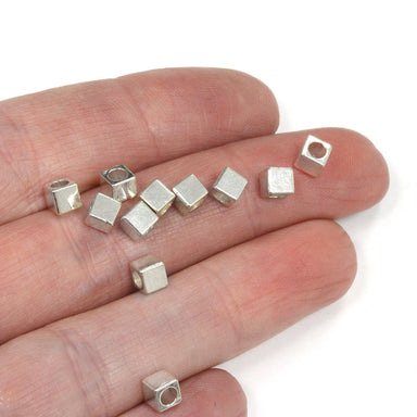 Small Soft Cube Spacer Bead Silver Plated 3.8x3.8mm - Pack of 150