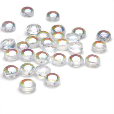 High quality pressed glass rounds from the Czech Republic, available in 3 sizes and a wide range of colours. Always popular as they're so versatile...