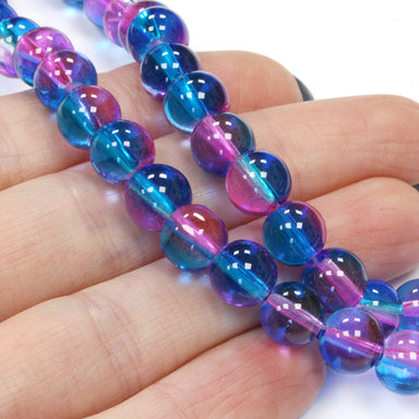 Dual Colour Glass 8mm Rounds Blue and Pink - 1 string