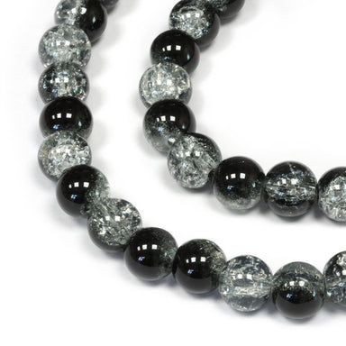 Crackled Glass 8mm Rounds Black and Clear - 1 string