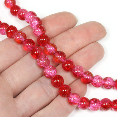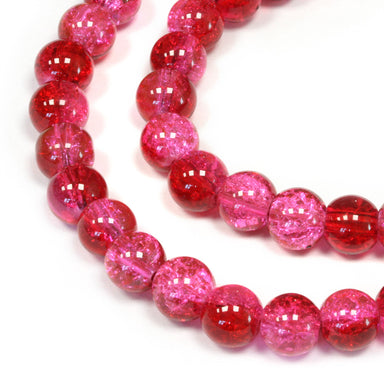 Crackled Glass 8mm Rounds Red and Pink - 1 string