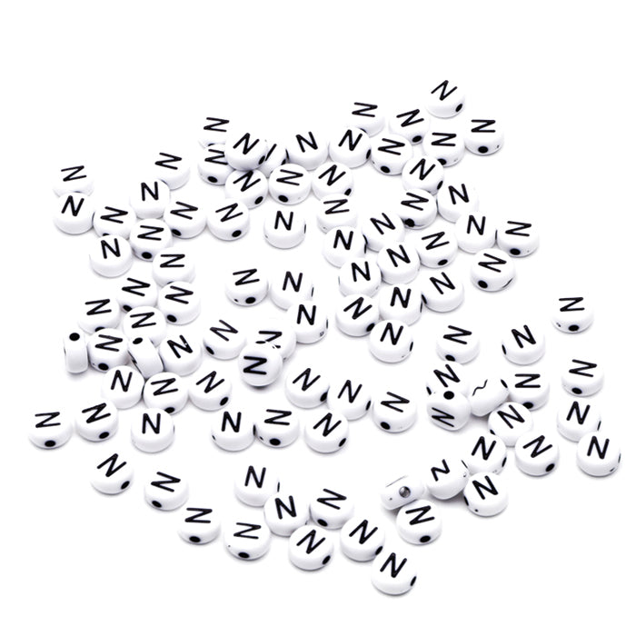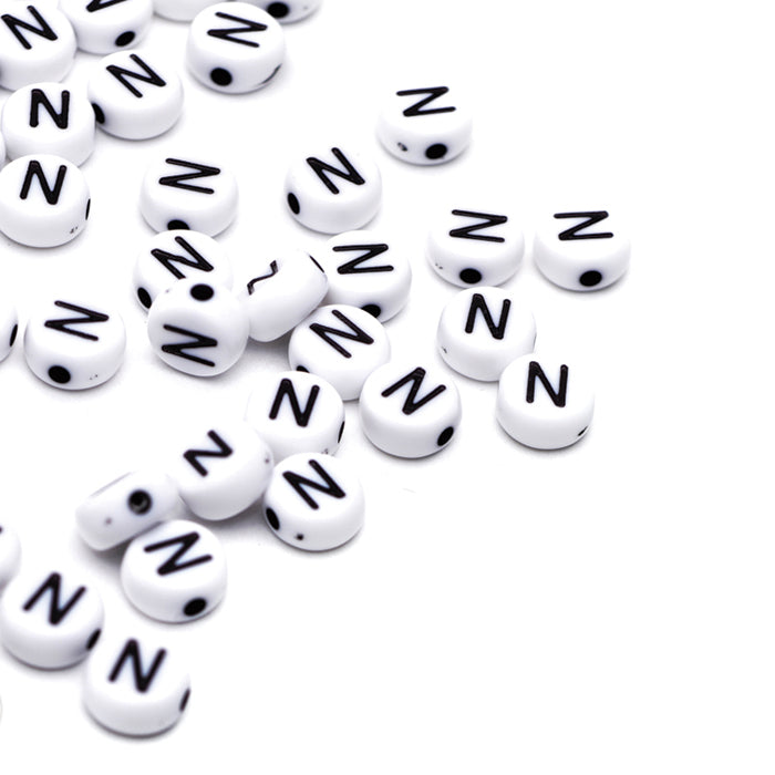 Letter Bead N Black Plastic Round 6mm-Pack of 100