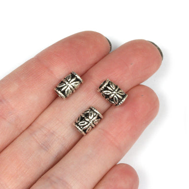 Flower Spacer Tube Bead 5.5x9mm Antique Silver - Pack of 50