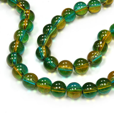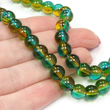 Dual Colour Glass 8mm Rounds Turquoise and Yellow - 1 string