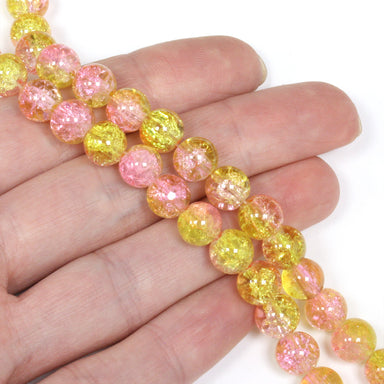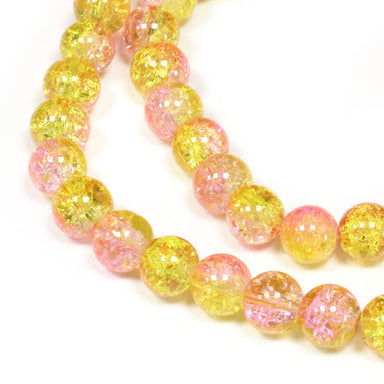 Crackled Glass 8mm Rounds Yellow and Pink - 1 string