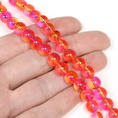 Dual Colour Glass 8mm Rounds Pink and Yellow - 1 string