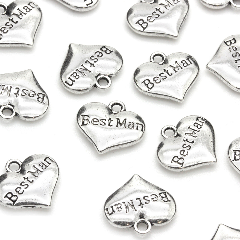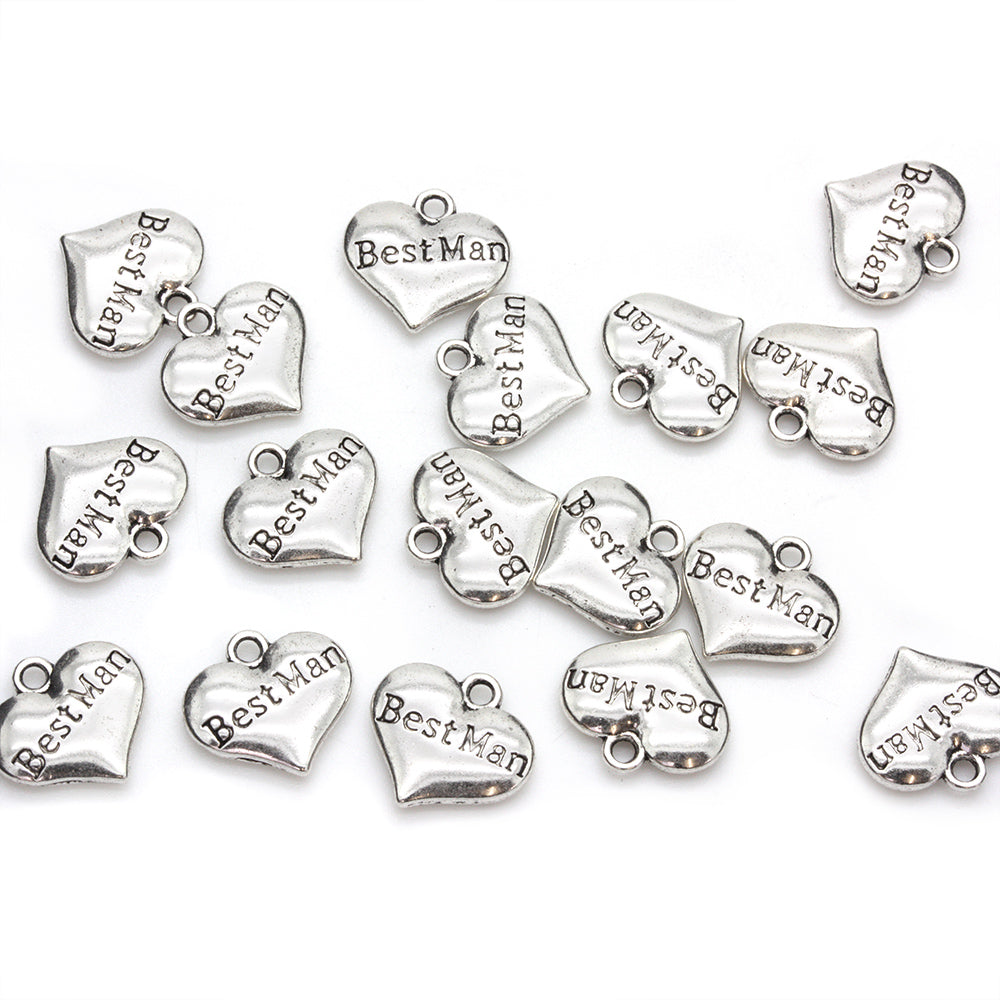 Best Man Heart Antique Silver 14x15mm - Pack of 20