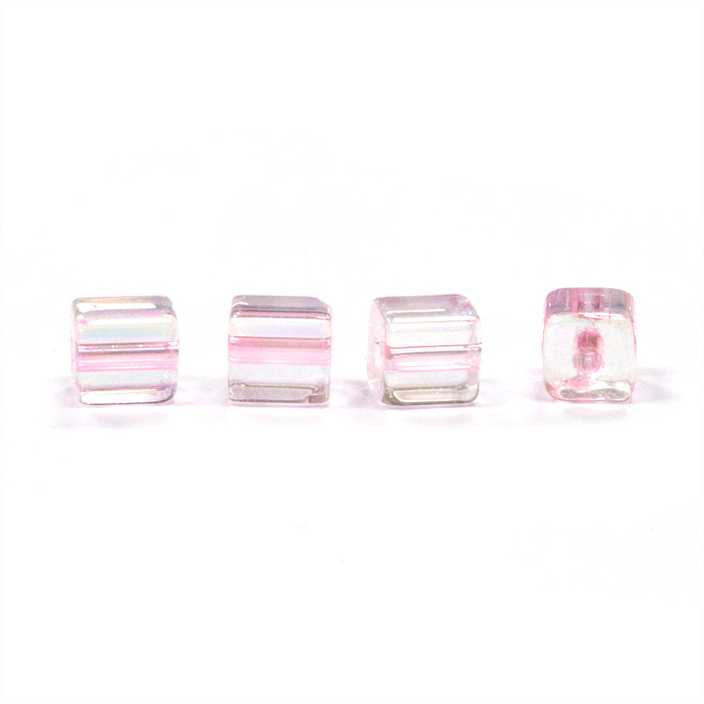 Colour Lined Cubes Pink 4x5mm - Pack of 50