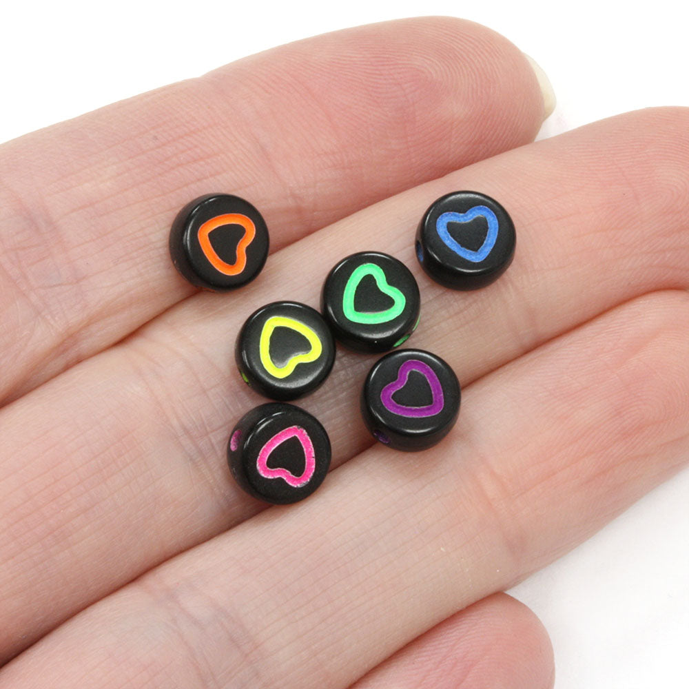 Coloured Hearts Black Rounds Mix 4x7mm - Pack of 200