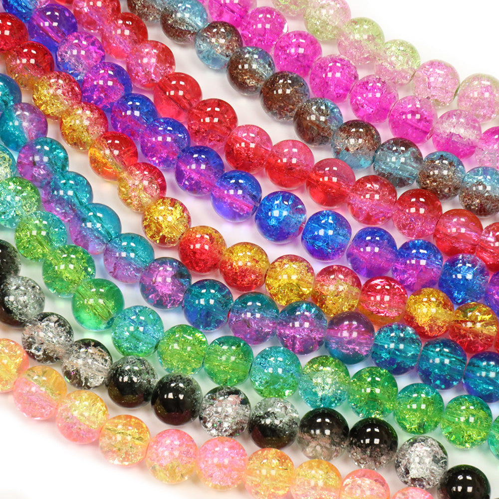 10  x strings of 8mm round crackle glass beads - approximately 100 beads per string.