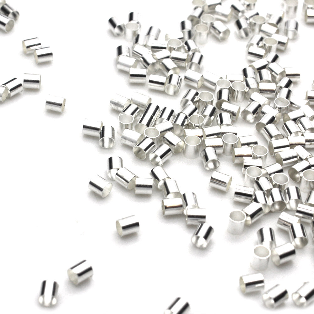 Crimp Tube Multi Strand Silver Plated Metal Barrel 3x3mm-Pack of 12