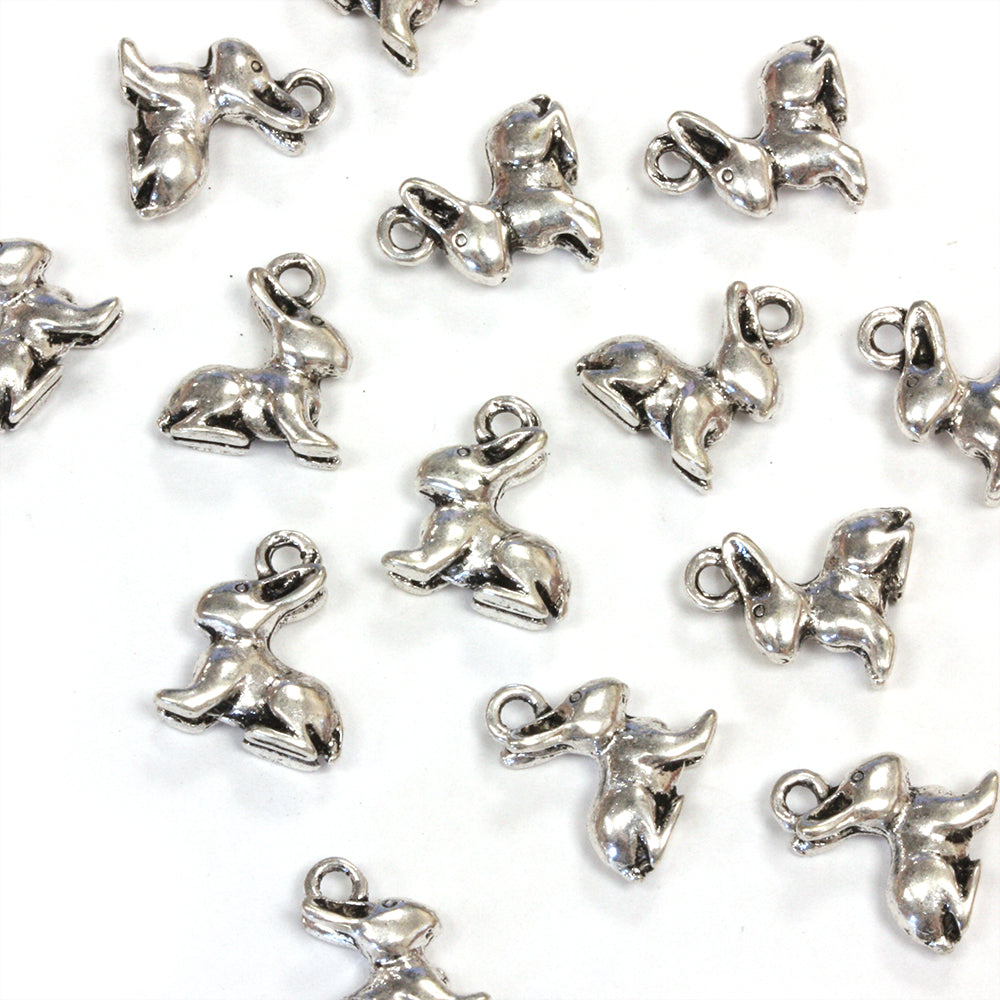 Crouched Rabbit Antique Silver 12x10mm - Pack of 20