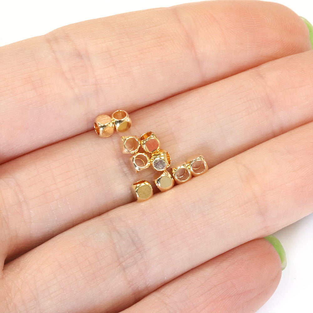 The ultimate spacer! Little metal gold plated spacer beads, perfect to go in between feature beads or even thread a few together for a simple but striking look.