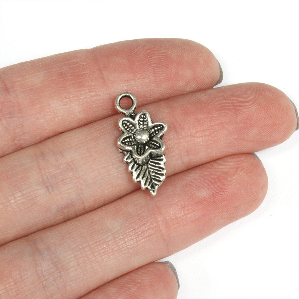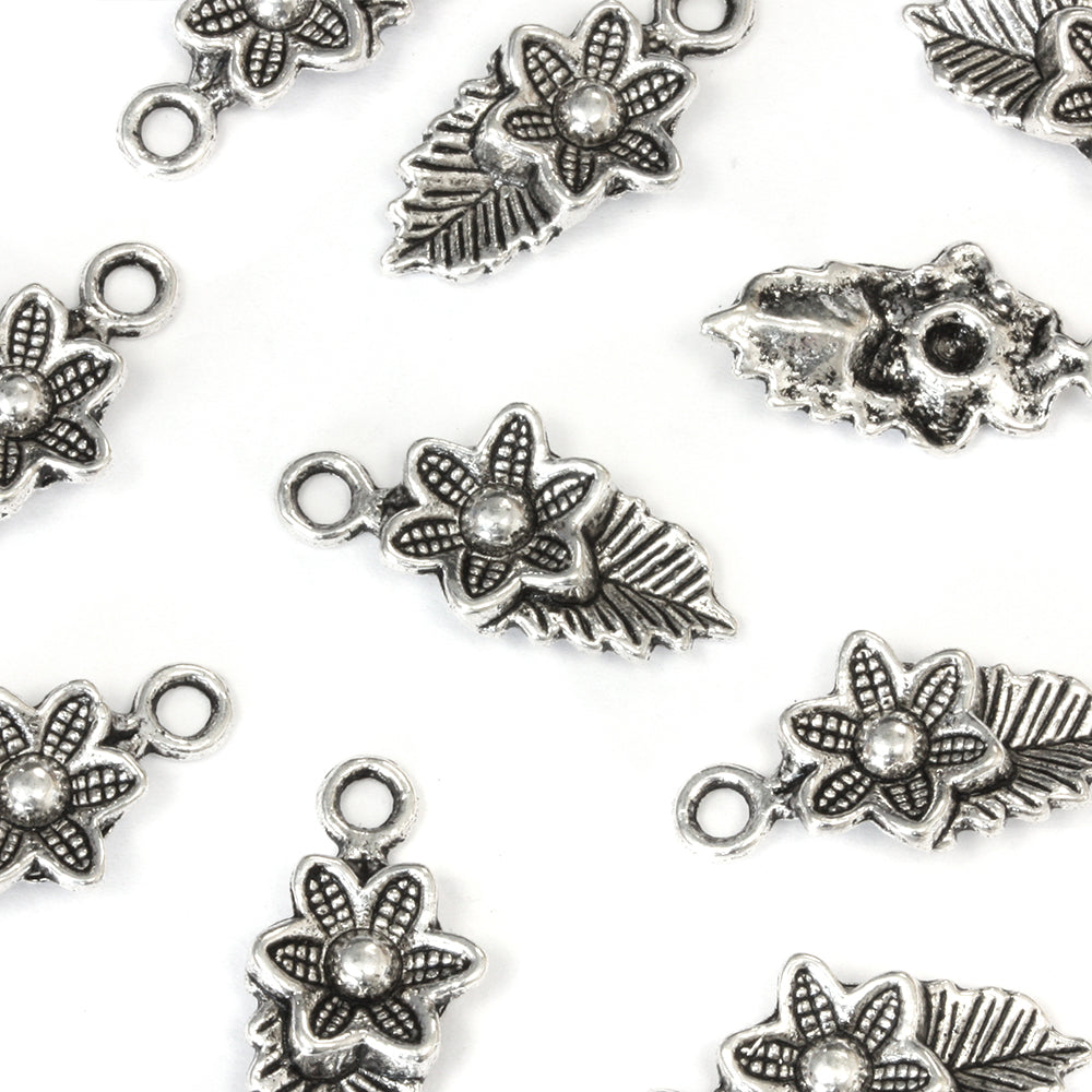 Flower and Leaf Antique Silver 22x11mm - Pack of 50