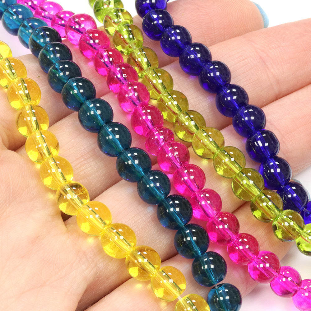 5 x strings of 6mm smooth round glass beads - each string approx 11"