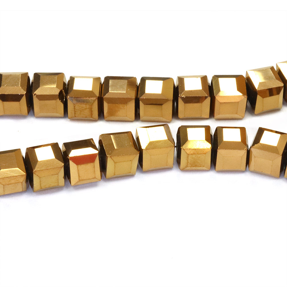 Super sparkly 6mm glass cube beads, great to use on their own or perfect as spacers between bigger beads. Approximately 98 beads per string.