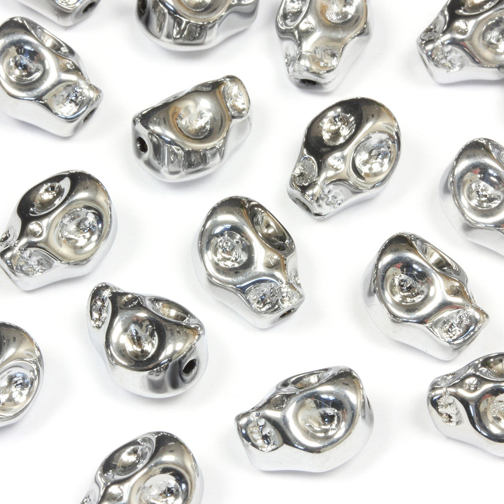 Glass Skulls 10x7mm Metallic Silver - Pack of 50