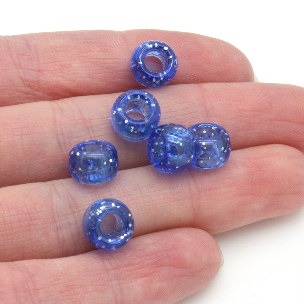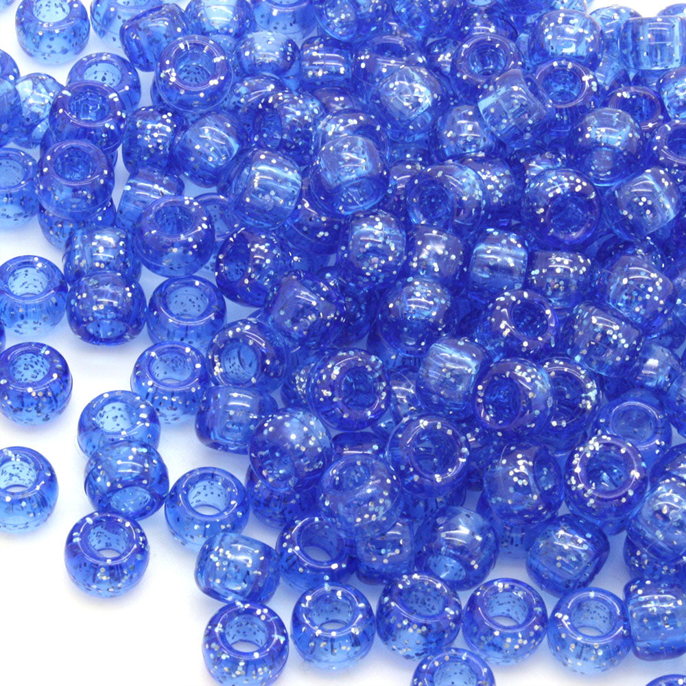 Glitter Blue Plastic Barrel Pony 6x8mm - Pack of 250