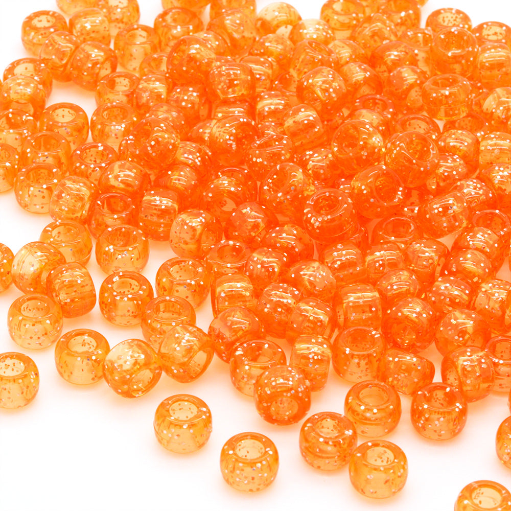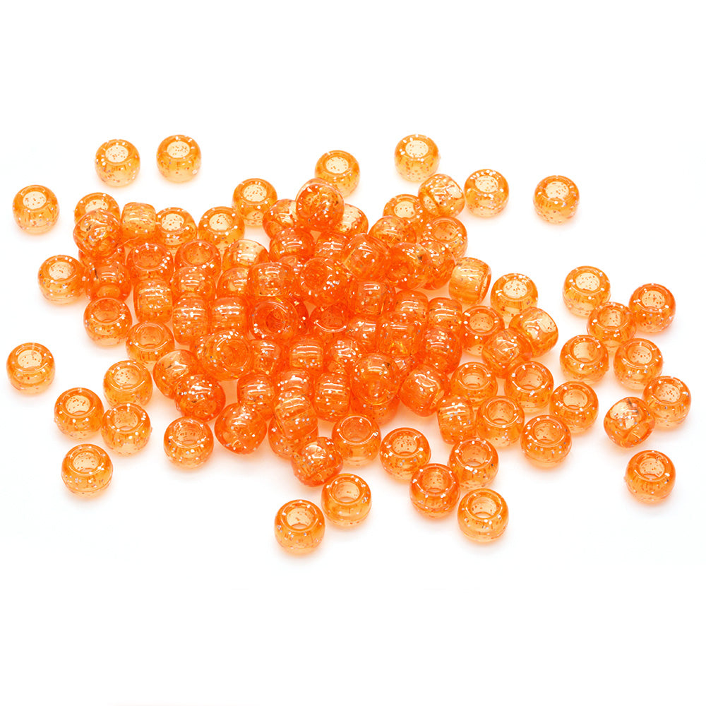 Glitter Orange Plastic Barrel Pony 6x8mm - Pack of 250