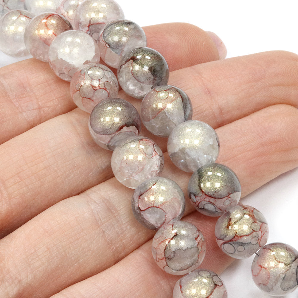 Gorgeous crackled glass beads with a gold coating. A string of approximately 84 beads.