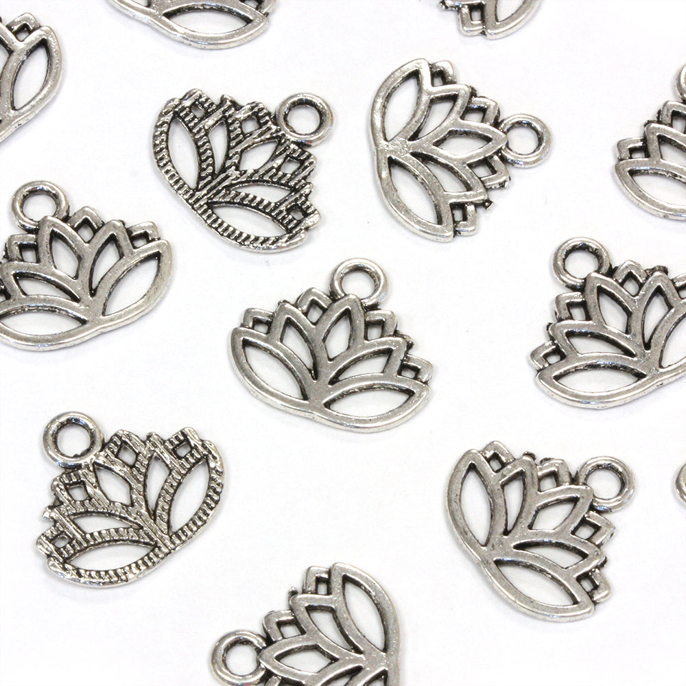 Lotus Flower Antique Silver 15x16mm - Pack of 50