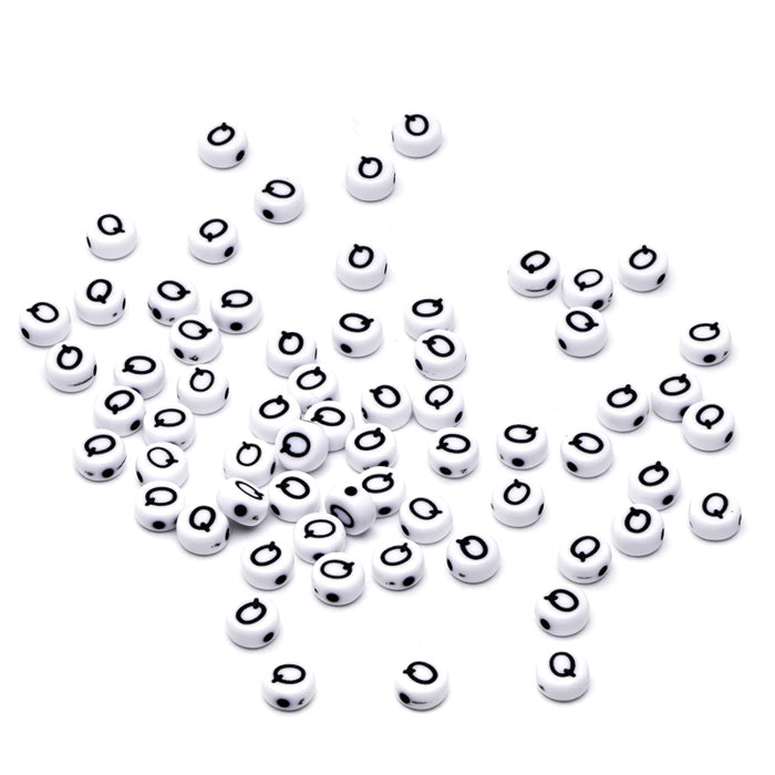 Letter Bead Q Black Plastic Round 6mm-Pack of 100