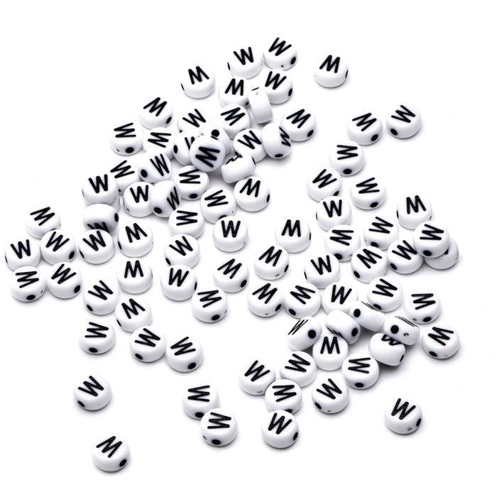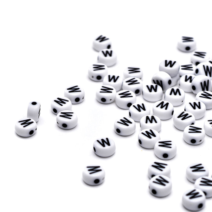 Letter Bead W Black Plastic Round 6mm-Pack of 100