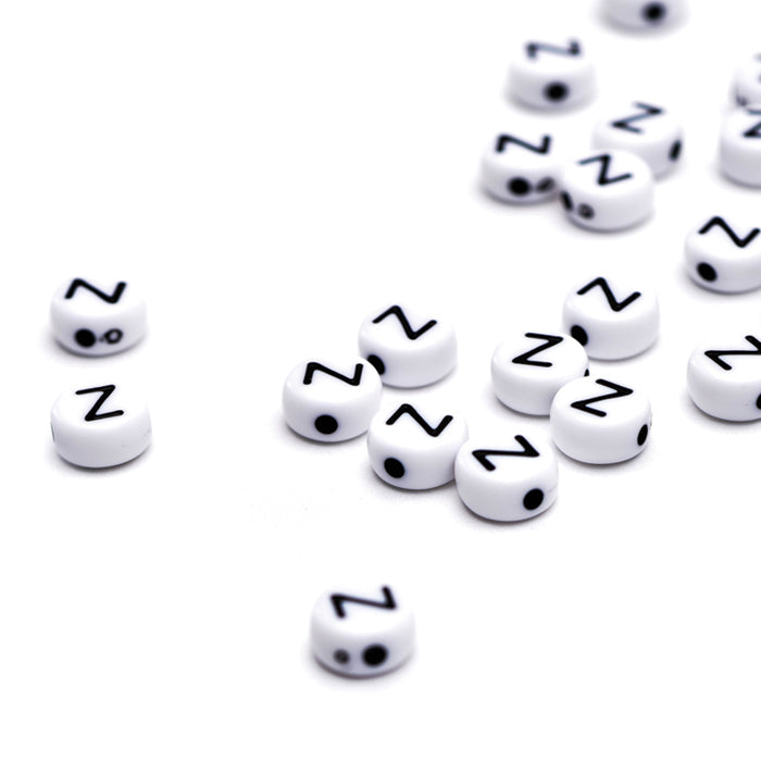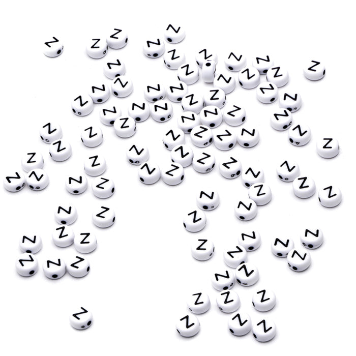 Letter Bead Z Black Plastic Round 6mm-Pack of 100
