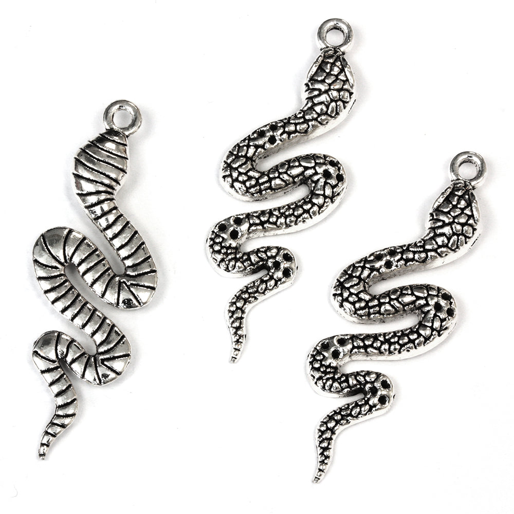 Snake Pendant Antique Silver 14.5x43mm - Pack of 10