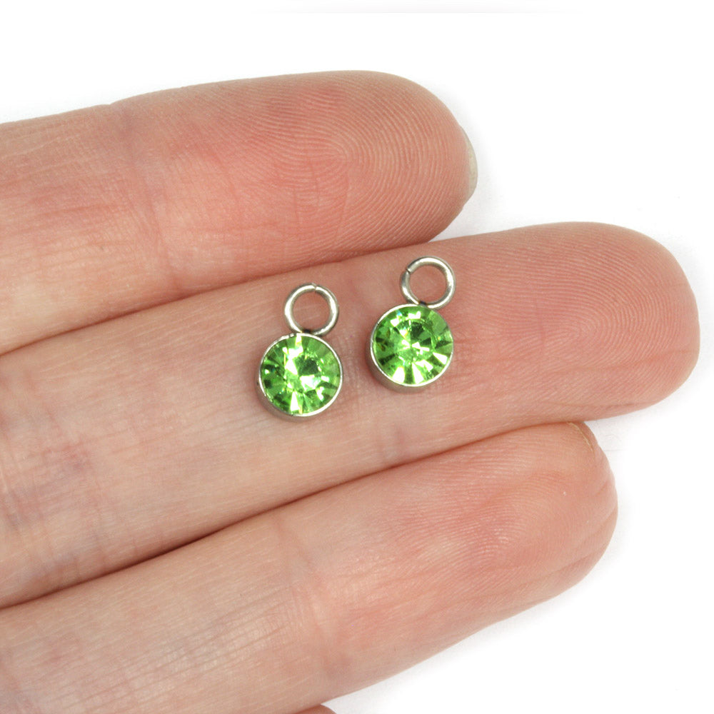 Tiny Glass Pendant Green 6x9mm- Pack of 2