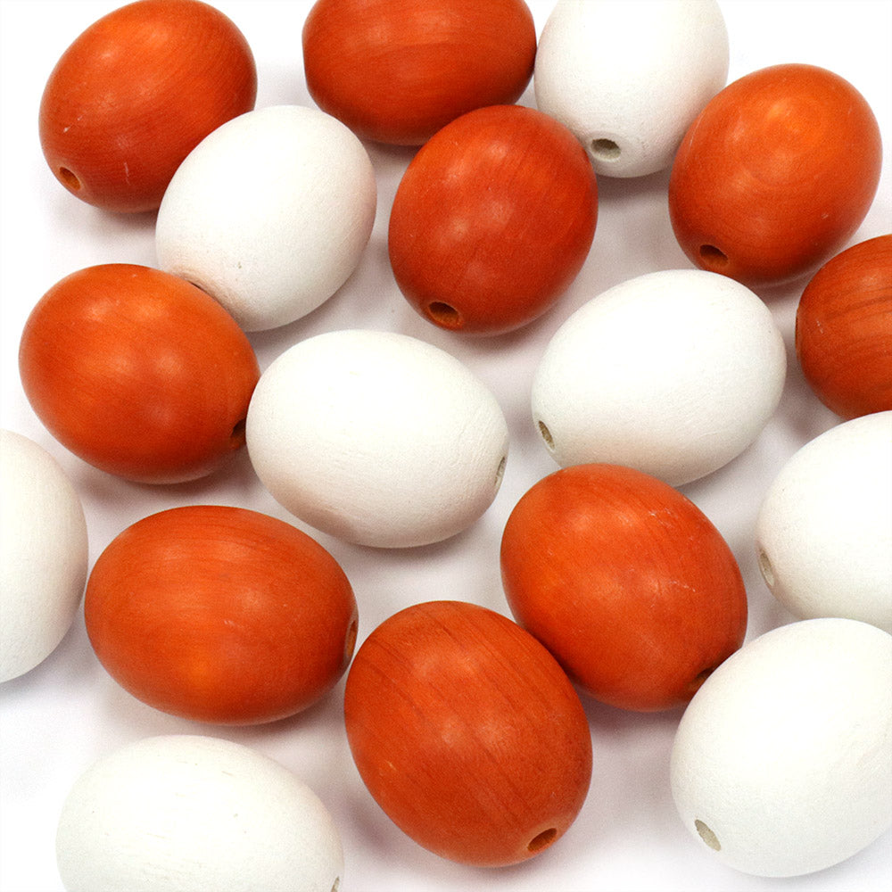 Wood Oval Orange and White 28x 22mm - Pack of 25